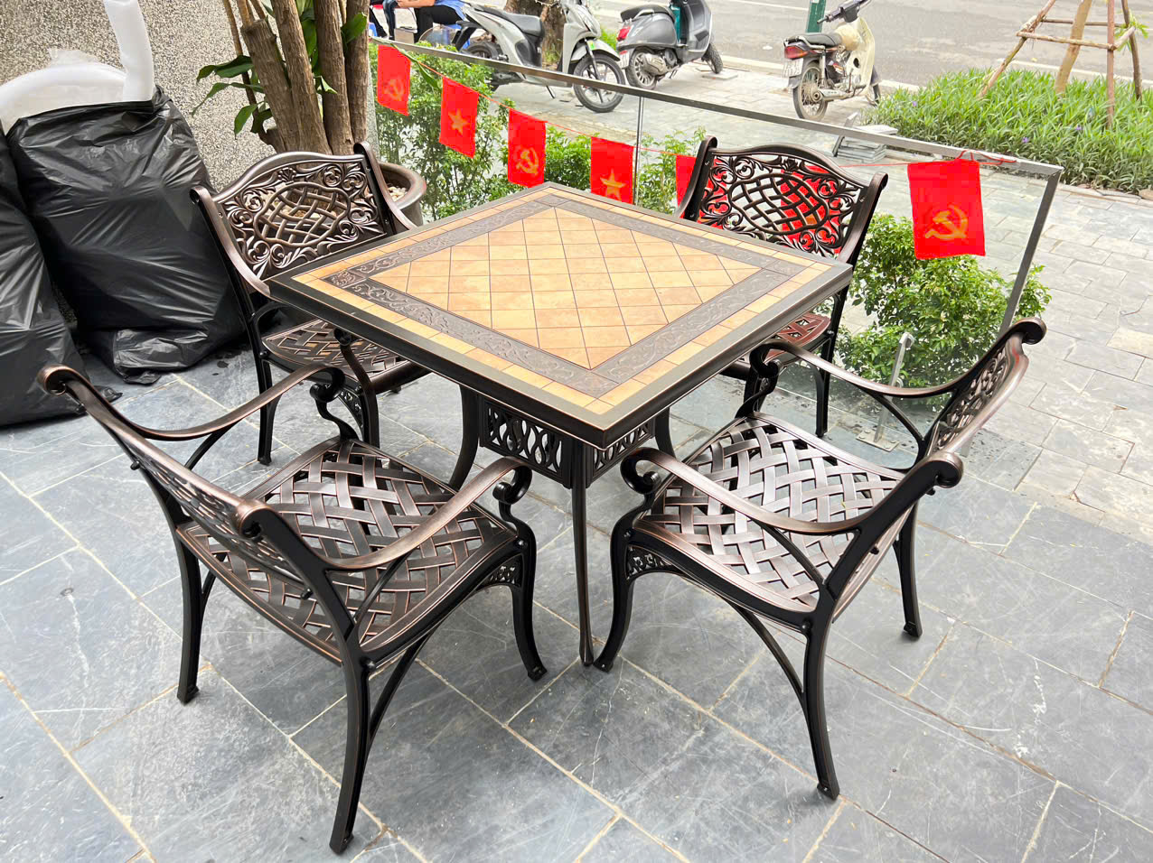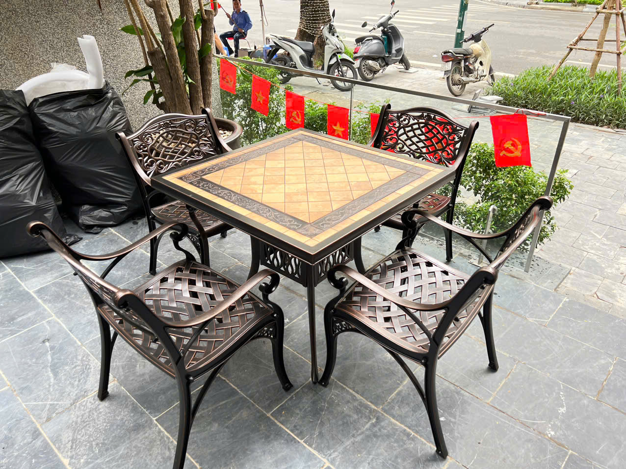 Kiểu dáng: Bộ bàn ghế ngoài trời