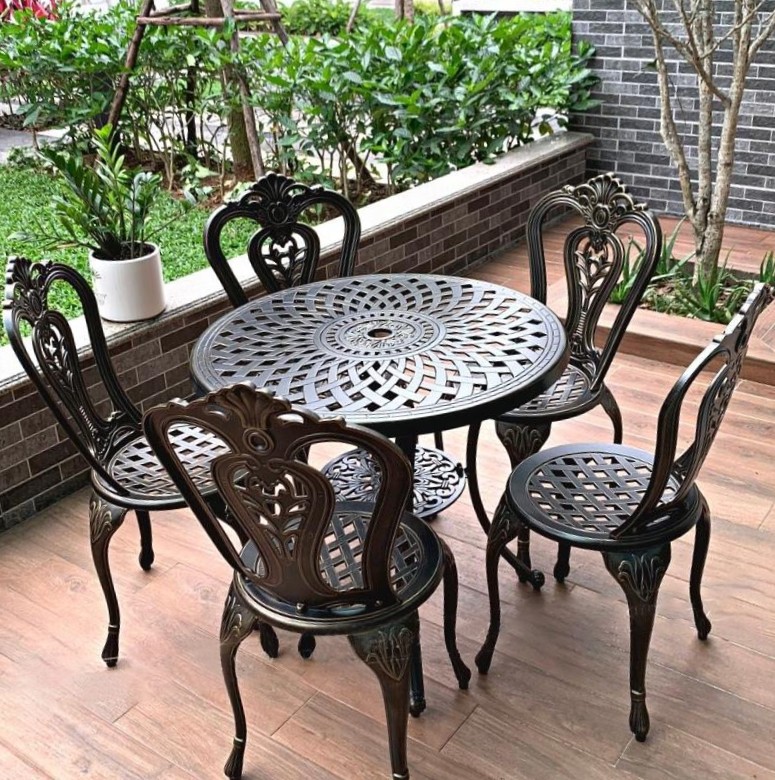 Tên sản phẩm: Bộ Bàn Ghế Nhôm Đúc Sân Vườn D78 6 Ghế