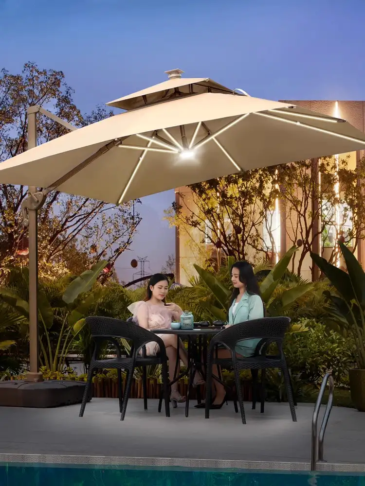 Dù Lệch Tâm Vuông 3m Nâng Hạ Xoay 360 Có Đèn Led